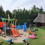 Situada a unos 4 km del Bunkry Mielno, la Zagroda Sarbinowo ofrece a sus huéspedes parque acuático y jardín. Situada a una distancia de 2 km de la Promenada Sarbinowo, la villa cuenta con una terraza con vistas al jardín.